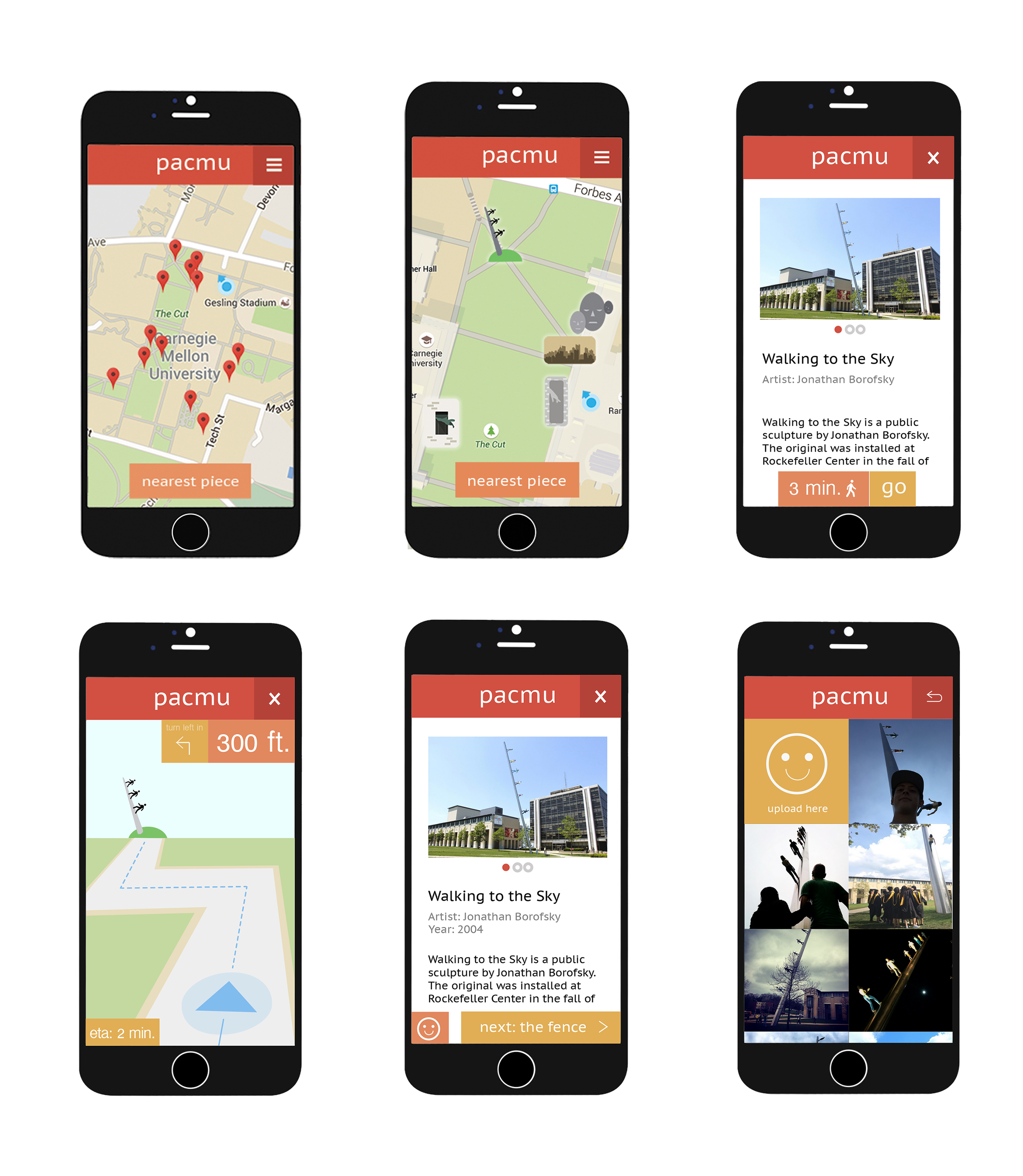 PACMU, or Public Art at Carnegie Mellon University, is an existing app that showcases the art pieces around campus. In this project, I redesigned the interface and user experience of the app to create a more seamless and desirable application for the user. I also storyboarded the experience of the application to show the interactions the user makes with the app in context of the environment.