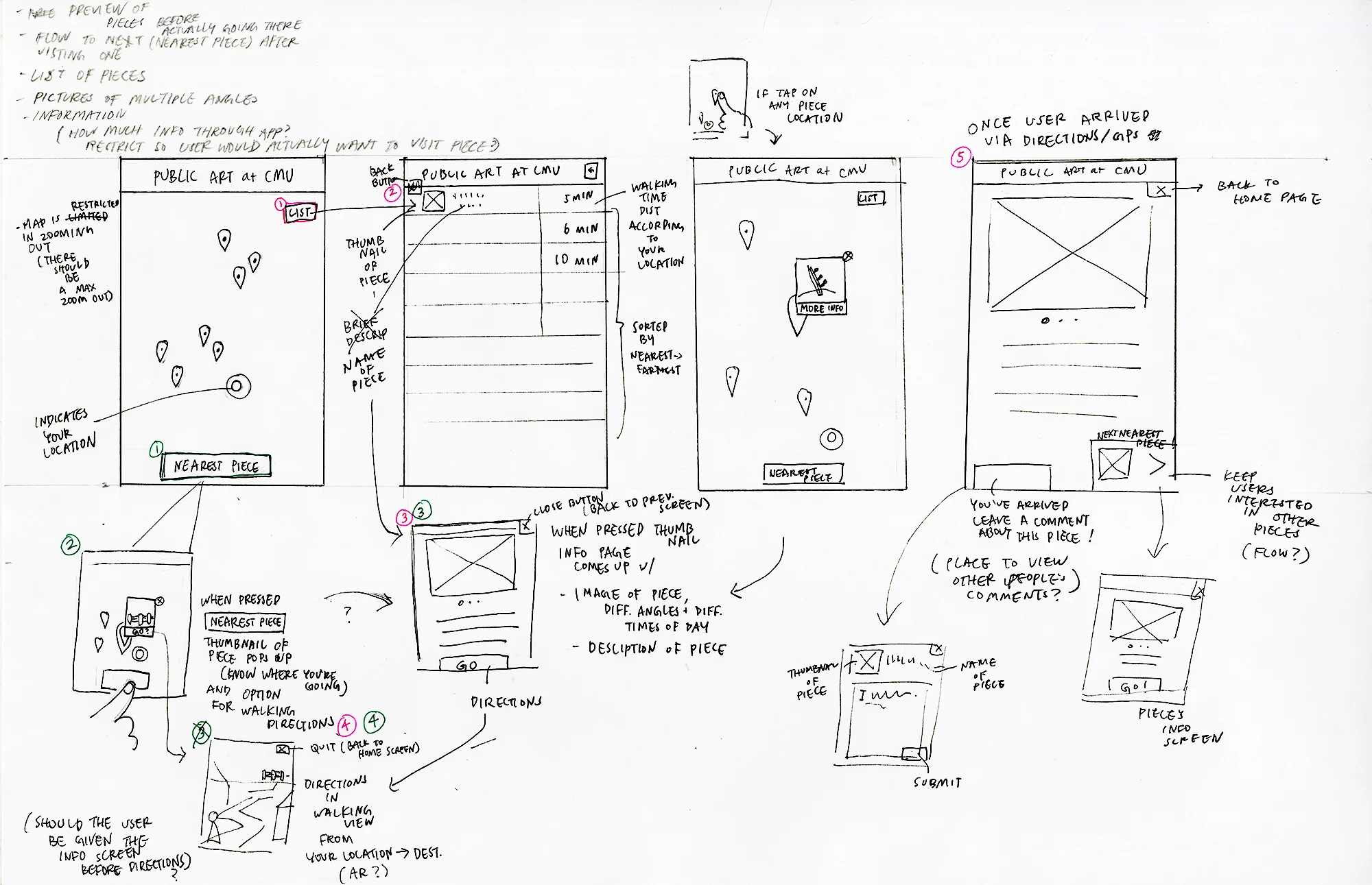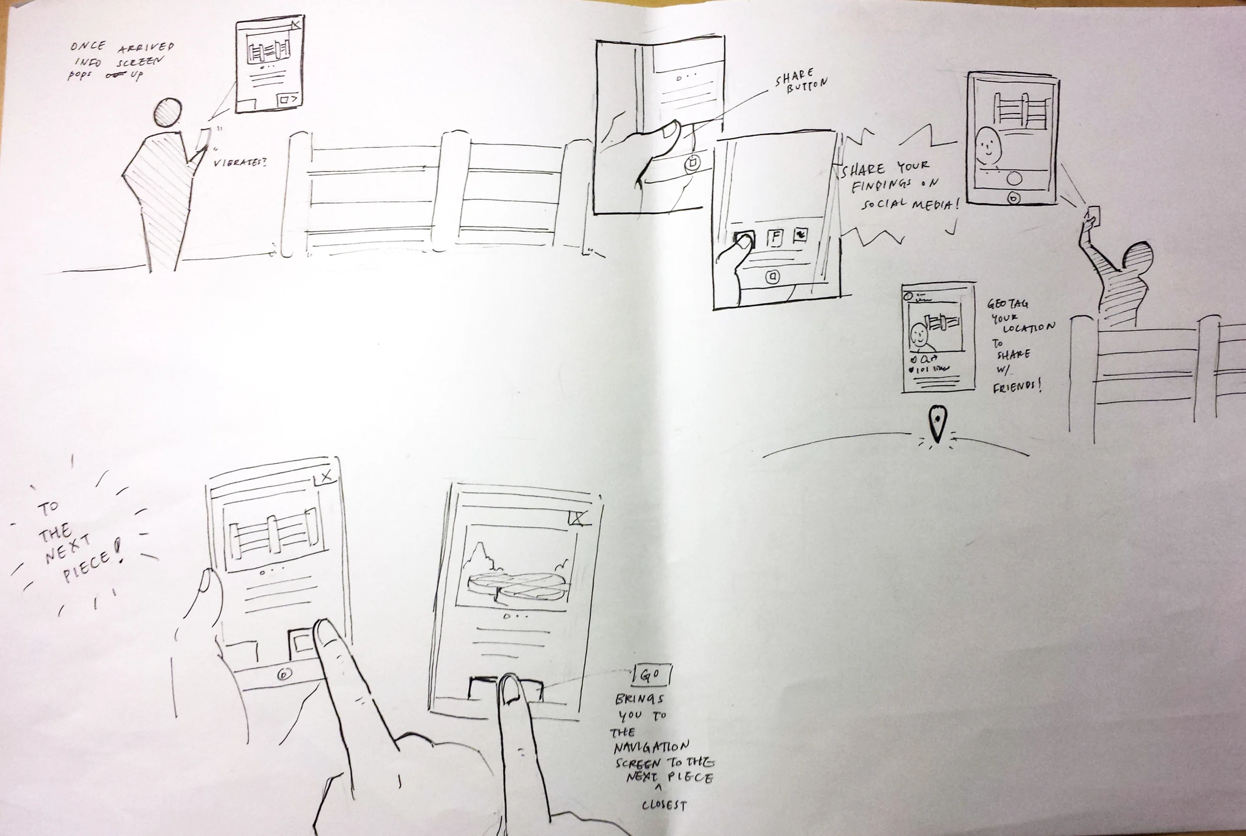 I went through several iterations of userflows to try to figure out what is the best way users can interact and experience the app. I also drew some in context storyboards to help me understand where in context the user would be using the app. Paper prototyping allowed me to test my app quickly without getting distracted by smaller details when I was iterating on the flow of the experience.
