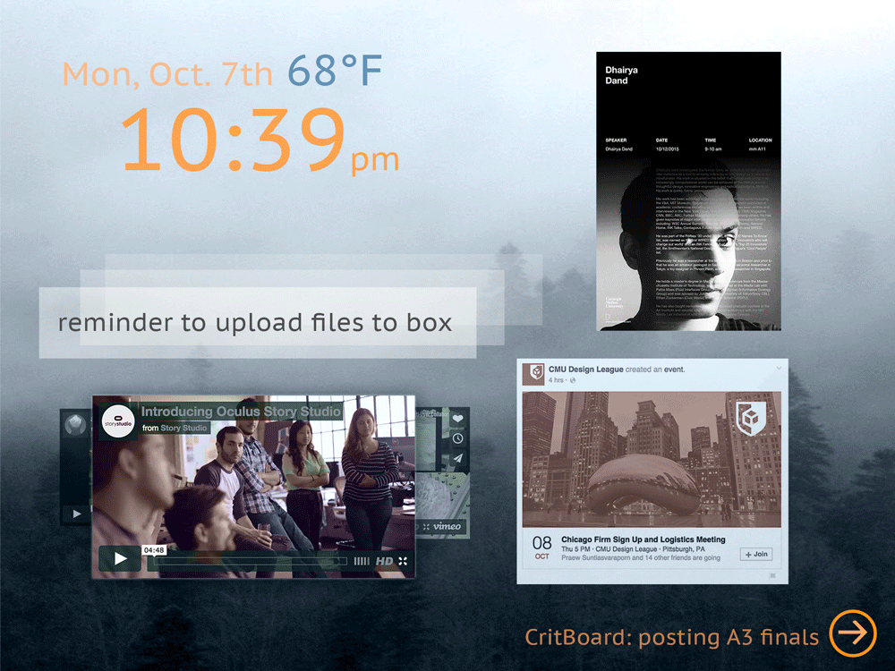 During my time in studio, I realized that much of what we work on is kept behind our personal screens, I wanted to recreate an space where digital work can be posted in a physical space. I believe this allows for a more collaborative environment where ideas, unrestricted by the digital space, can be bounced around more freely.